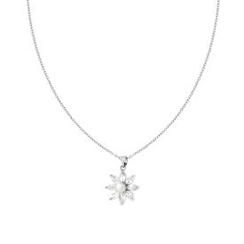 Collana con catena forzatina con accessorio pendente a forma di fiore con perla centrale e crystal bianchi taglio trapezio incasto...