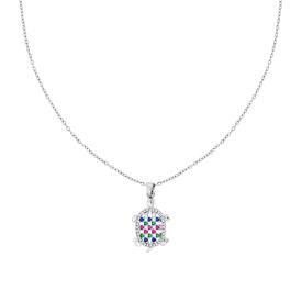 Collana con catena forzatina diamantata con accessorio pendente punto luce montato su 4 Griffe con Crystal bianchi incastonati int...