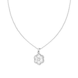 Collana con catena forzatina diamantata con accessorio fiore con cuore pendente con crystal bianchi targlio baguette e tondo incas...