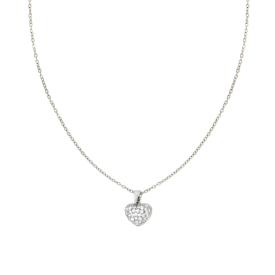 Collana con catena forzatina diamantata con accessorio a forma di cuore con crystal bianchi incastonati.