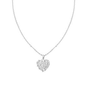 Collana con catena forzatina diamantata con accessorio pendente a forma di cuore con all'interno fiori con Crystal bianchi taglio ...