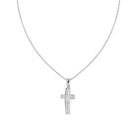 Collana con catena Forzatina Diamantata con accessorio pendente a forma di croce con finitura lucida e crystal bianco incastonato....