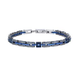 Bracciale con catena maglia imperniata con finitura satinata e lucida, con Crystal blu incastonati.