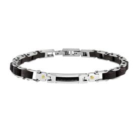 Bracciale con maglia imperniata in legno colore nero con targa centrale lucida con inserto fune colore nero in acciaio.