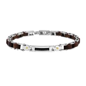 Bracciale fascia in ecopelle marrone con targa centrale con finitura satinata.