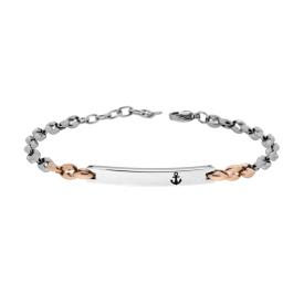 Bracciale con catena a maglia imperniata con dettagli colore rosè, accessorio targa con crystal neri incastonati, finitura satina...