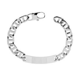 Bracciale con catena grumetta e accessorio targa con finitura lucida e con cornice rigata.