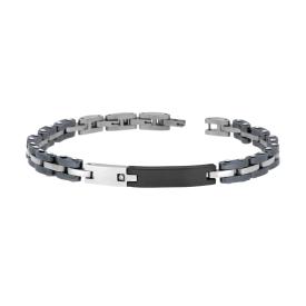 Bracciale con maglia imperniata bicolore, ceramica antracite e acciaio, con accessorio targa con finitura lucida e satinata e deco...
