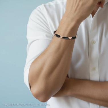 Bracciale con catena maglia imperniata colore nero e rosè con finitura liscia e lucida.
