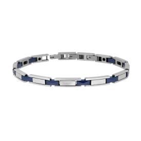 Bracciale con catena a maglia imperniata con inserti in ceramica colore blu con finitura liscia e lucida.