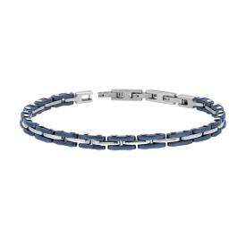 Bracciale con catena maglia imperniata con finitura satinata e lucida, con Crystal blu incastonati.