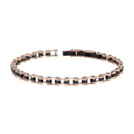 Bracciale con catena a maglia imperniata rosè con inserti in acciaio e in ceramica colore nero con crystal bianchi e finitura lis...