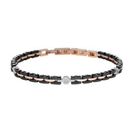 Bracciale con catena a maglia imperniata colore nero e acciaio, con accessorio targa con finitura satinata e lucida.