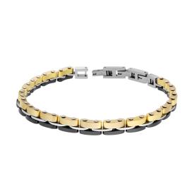 Bracciale catena con maglia bicicletta imperniata bicolore e finitura liscia e lucida.