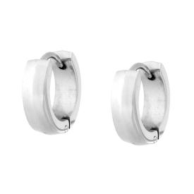 Orecchini cerchio con finitura liscia e lucida, chiusura a scatto.