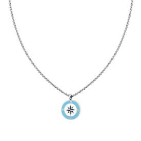 Collana con catena Forzatina Diamantata e accessorio pendente tondo lucido con soggetto rosa dei venti e punti cardinali con smalt...