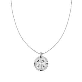 Collana con catena Forzatina Diamantata con accessorio di forma tonda, soggetto rosa dei venti colore nero e acciaio, crystal nero...