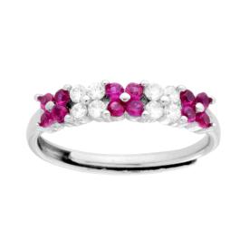 Anello veretta con 5 fiori con cubic zirconia Rosso Rubino e bianchi incastonati.