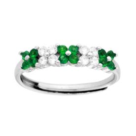 Anello Veretta con Zirconi colore alternato bianco e Verde Smeraldo con montatura 4 Griffe.