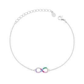 Bracciale con crystal rosa con palline pendenti e filo pendente con crystal multicolor pastello e stella bombata con finitura lisc...