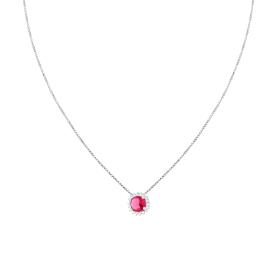 Collana con Catena Forzatina Diamantata con ovale rosso rubino su montatura 4 Griffe con cubic zirconia bianchi incastonati intorn...