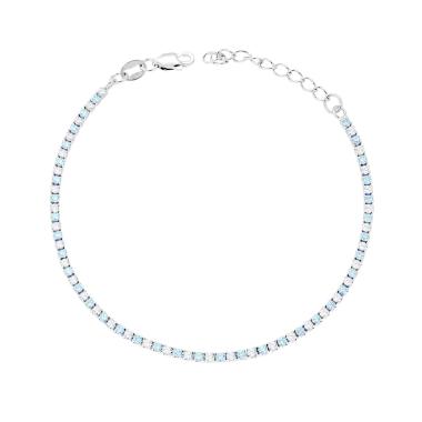 Bracciale Tennis con cubic zirconia acquamarina e bianchi incastonati alternati, su montatura 4 Griffe.