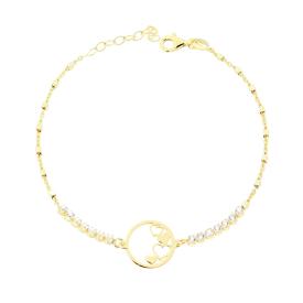 Bracciale catena veneziana con palline diamantate e accessorio centrale pendente a forma di gatto con cuore con lavorazione lucida...