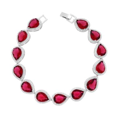 Bracciale Tennis con cubic Zirconia rosso rubino a forma di goccia con cubic zirconia bianchi incastonati intorno.