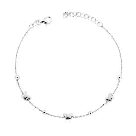 Bracciale con catena forzatina diamantata e accessori bombati pendenti a forma di farfalla con finitura liscia e lucida.