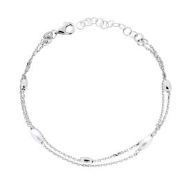 Bracciale con due fili catena rolò con catena forzatina ovale ritorta centrale con finitura liscia e lucida.