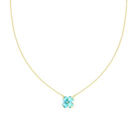 Collana con catena forzatina diamantata con accessorio pendente a forma di fiore con cubic zirconia bianco e Blu Zaffiro intorno.