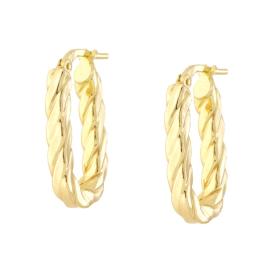 Orecchini cerchio ovale con canna a sezione quadrata con lavorazione torchon, finitura liscia e lucida. Made in Italy