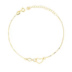 Bracciale con catena Forzatina Diamantata con accessori Plain Pendenti a forma di Cuore e Tondi e in linea a forma di Infinito.
