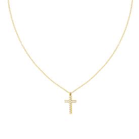 Collana con catena forzatina diamantata con accessorio pendente a forma di croce con cubic zirconia bianchi incastonati.