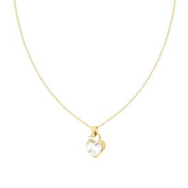 Collana con catena forzatina diamantata con accessorio a forma di cuore con crystal colore bianco incastonati.