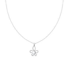 Collana con catena forzatina diamantata con accessorio pendente perla bianca e fiore con crystal bianchi montati su Griffe.