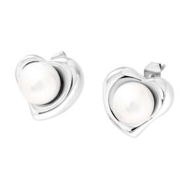 Orecchini con chiusura ad amo con finitura lucida e perla bianca.