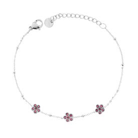 Bracciale con catena Forzatina Diamantata e palline con accessori pendenti a forma di fiore con crystal azzurro incastonati.