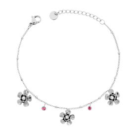 Bracciale con catena Forzatina Diamantata e palline con accessori pendenti a forma di fiore con crystal azzurro incastonati.
