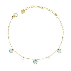 Bracciale con catena forzatina diamantata con accessori, cuore con crystal azzurri e bianchi incastonati e occhio turco con smalto...