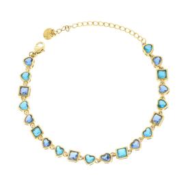 Bracciale catena di cuori e quadrati alternati con crystal Multicolor incastonati.