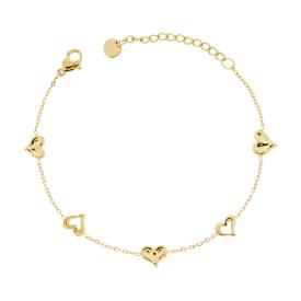 Bracciale con catena di Ovali con lavorazione effetto martellato e accessori pendenti a forma di cuore con finitura liscia e lucid...