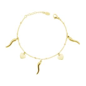 Bracciale con catena di Ovali con lavorazione effetto martellato e accessori pendenti a forma di Cuore, Quadrifoglio, Mano di Fati...