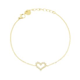 Bracciale con catena forzatina diamantata con accessori in linea a forma di cuore con lavorazione fluida e lucida.