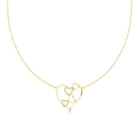 Collana con catena forzatina con accessori passanti a forma di cuore con crystal incastonati e finitura lucida.