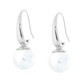 Orecchini con punto luce crystal bianco montato su Griffe e perla bianca, chiusura con farfallina decorativa a forma di fiore.
