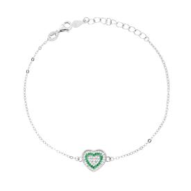 Bracciale con Catena Forzatina con accessorio pendente a forma di cuore con cubic zirconia bianco incatsonato e finitura liscia e ...