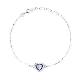 Bracciale con due fili di catena forzatina e accessori centrali, cuore e cubic zirconia bianchi incastonati.