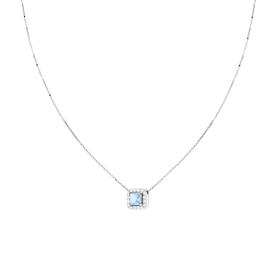 Collana con catena veneziana diamantata con accessorio quadrato con cubic zirconia taglio carrè Blu Zaffiro e cubic zirconia bian...