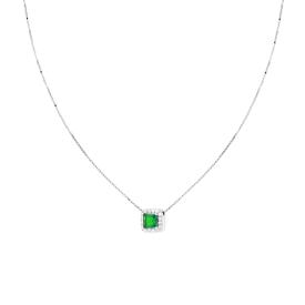 Collana con catena forzatina diamantata con accessorio pendente quadrato Verde Smeraldo con cubic zirconia bianchi incastonati int...